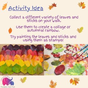 Leaf Hunt: Collect and sort leaves by colour or size โ a fun way to explore nature and practice early learning skills.