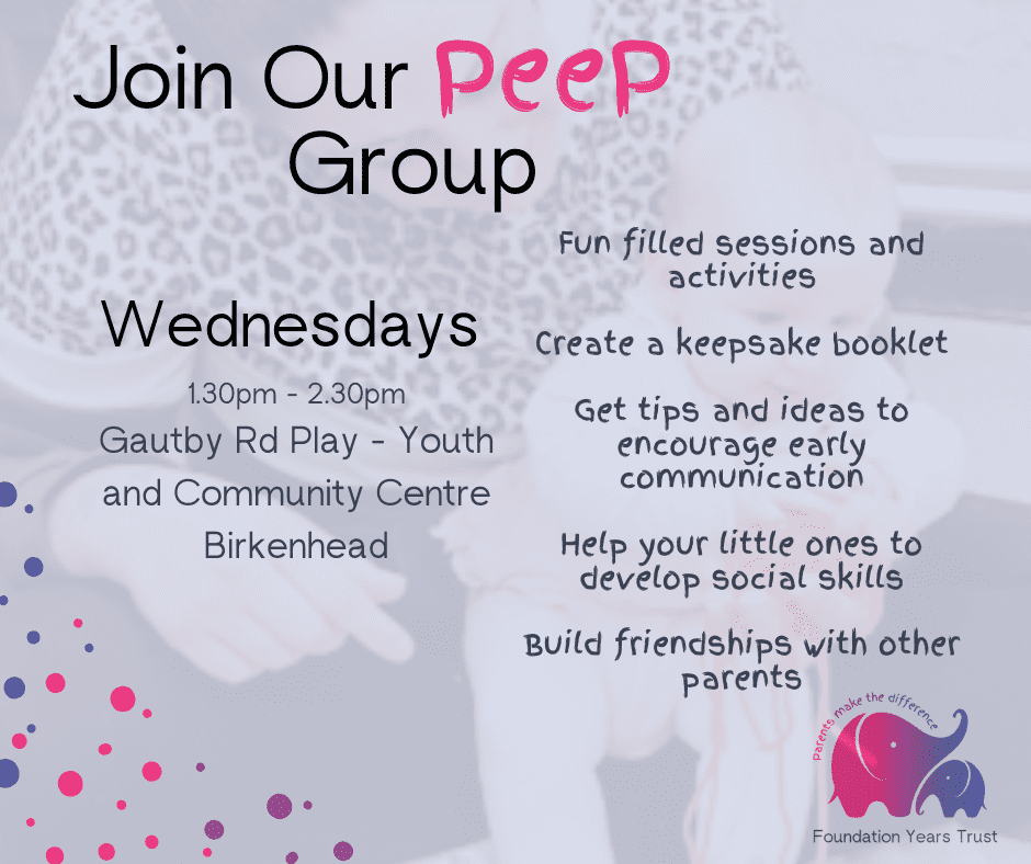 These fun, free groups are for parents/carers with little ones 0-2 years old. Would you like to know more about how you can support your child with their early development skills , as well as build your own confidence in a fun, non-judgemental group? If so, then our Peep Groups are for you and your little one! We cover different topics all about child development, enjoy stories and songs, share fun activities with ideas for home, whilst creating a lovely keepsake book and you and gain a certificate too!