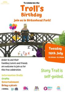 Come and celebrate the Troll’s birthday with us at Birkenhead Park. Join us for fun, crafts and entertainment on the 16th of July from 10am – 12pm. We hope to see you there!🥳